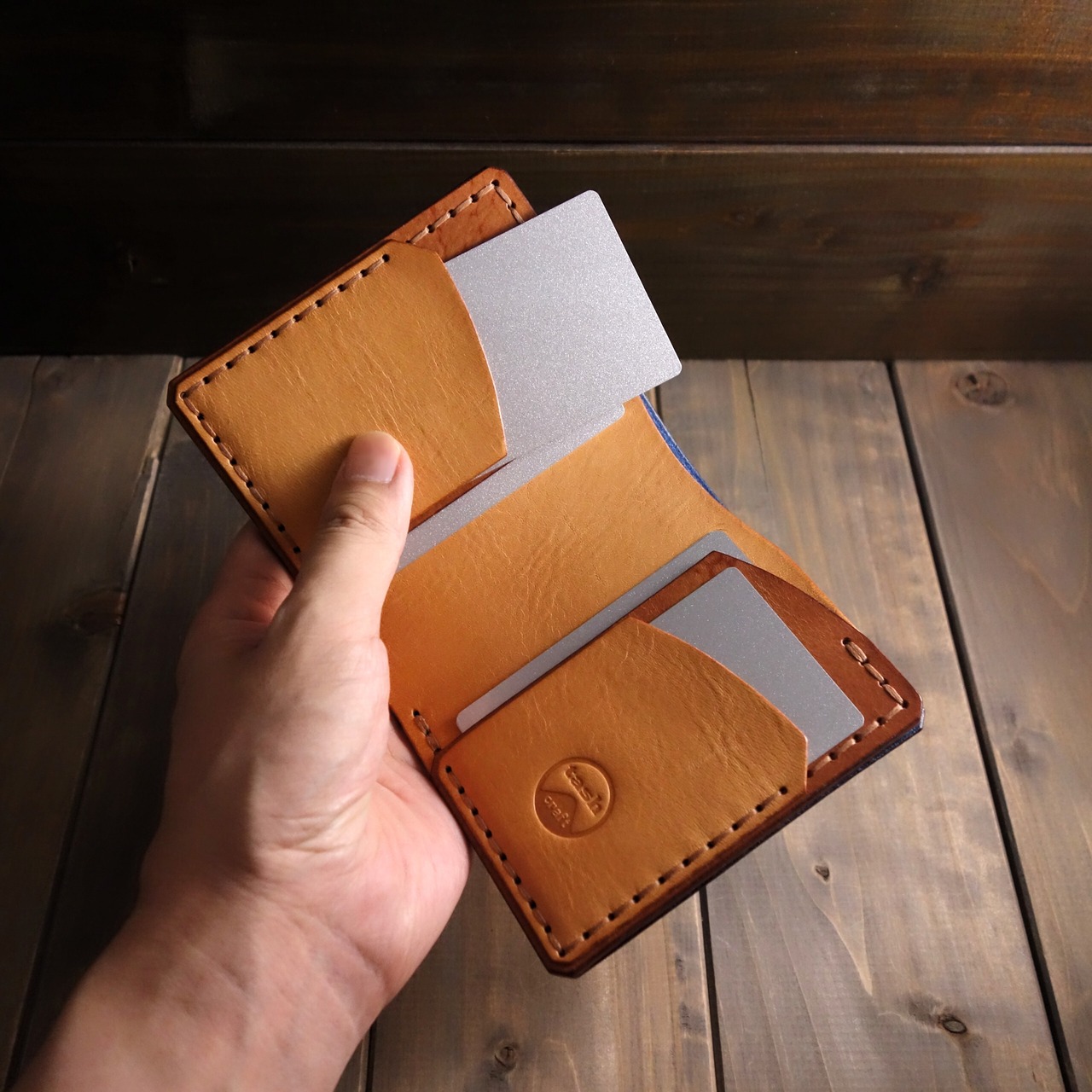 札ポケットが大きく開く二つ折り財布”エドヴァルド”【コバルトxナチュラルxキャメル】 ミドルウォレット