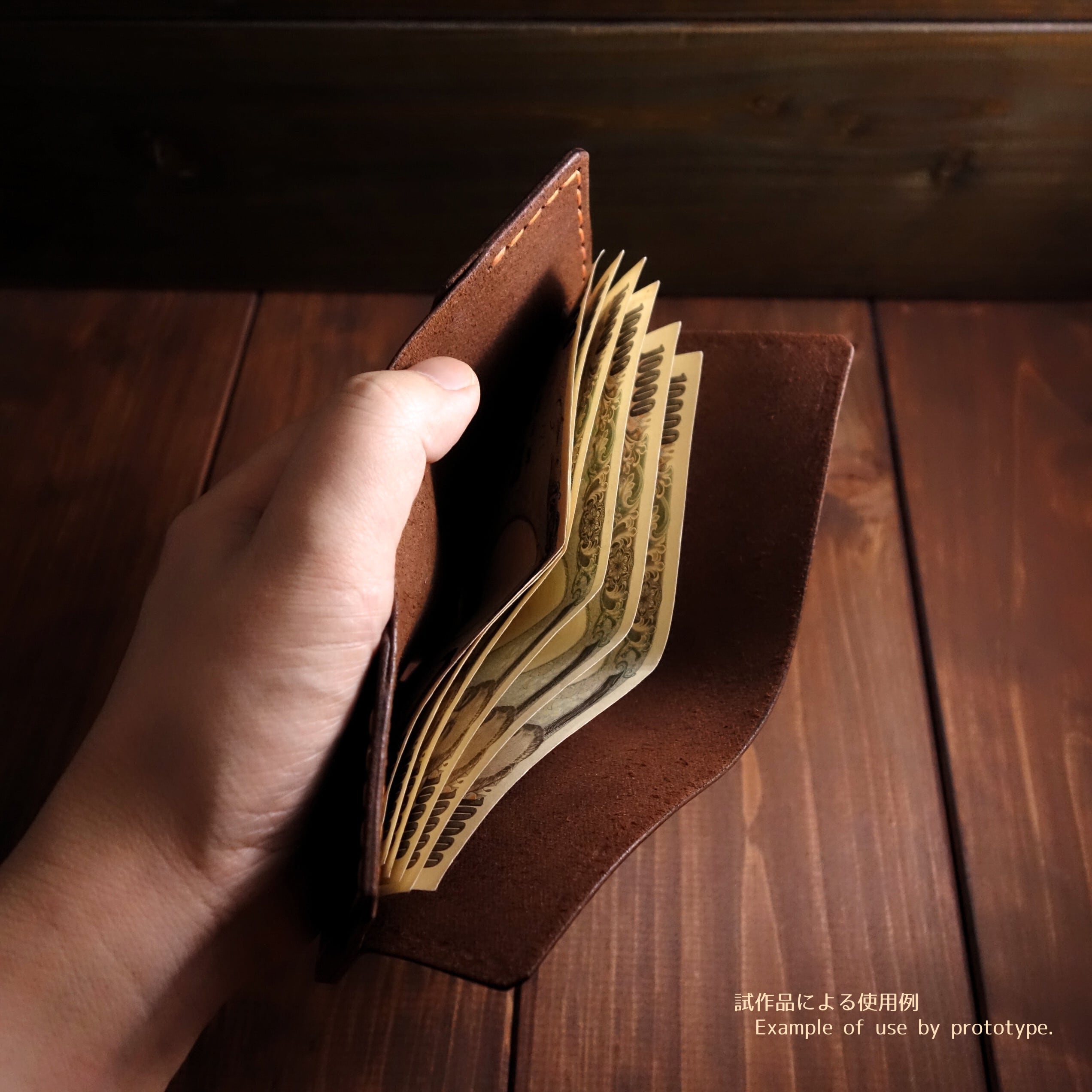 札ポケットの部分は、かなり大きく開口するため、縦にも長いミドルウォレットでも、札の出し入れが楽に行えます。