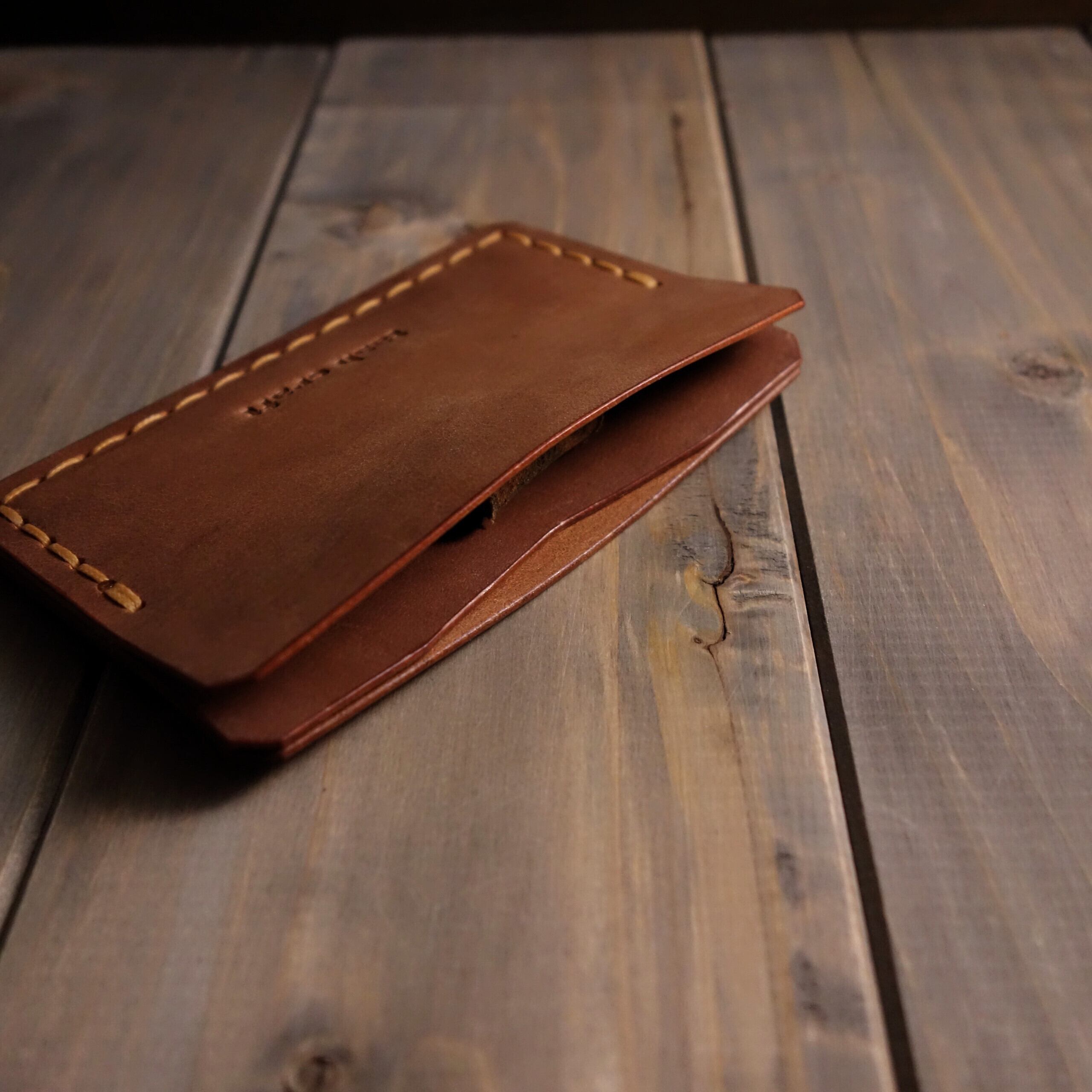 ややコシが強めの革なので、少し漉いて柔らかめにしてありますが、使い始めは硬い印象あり。