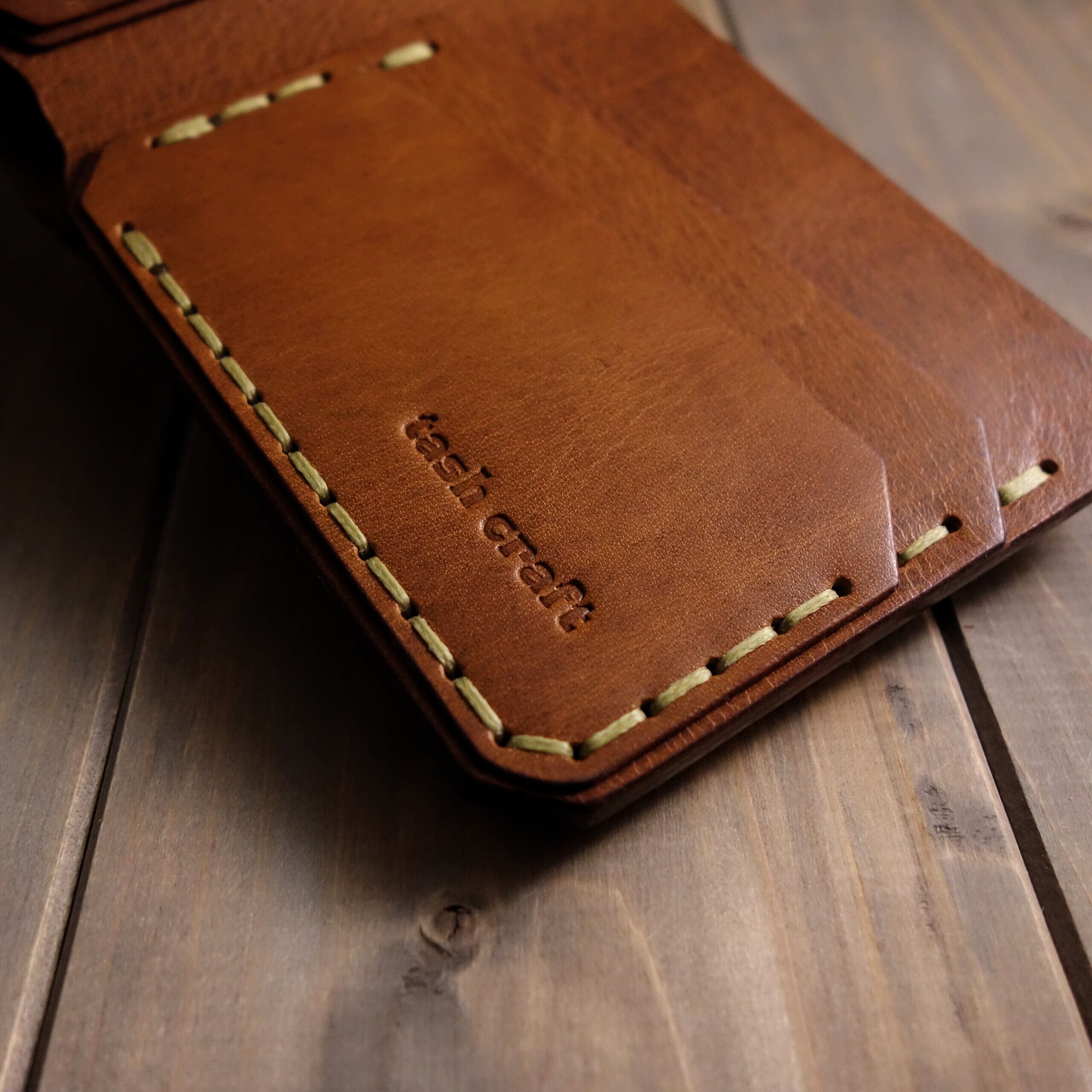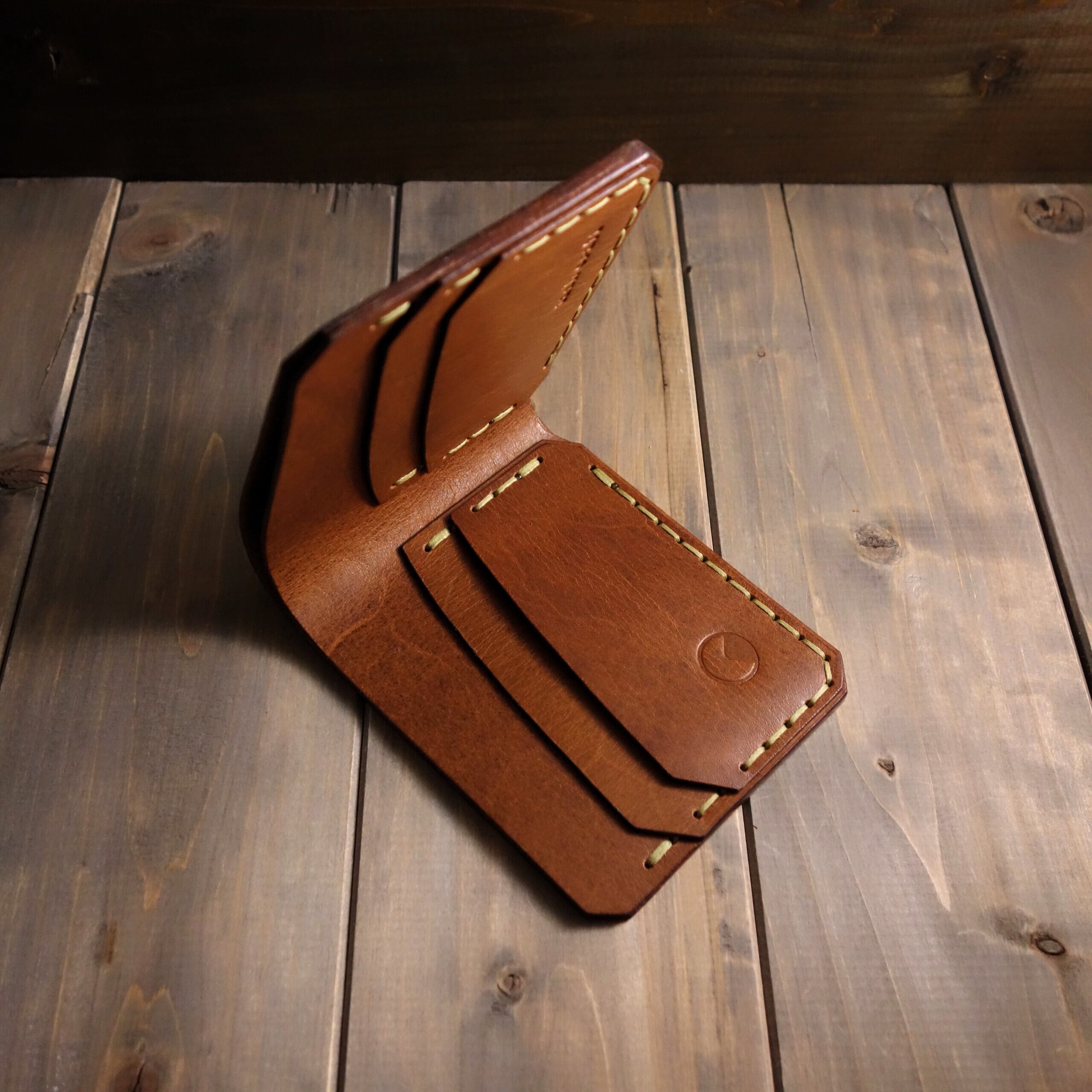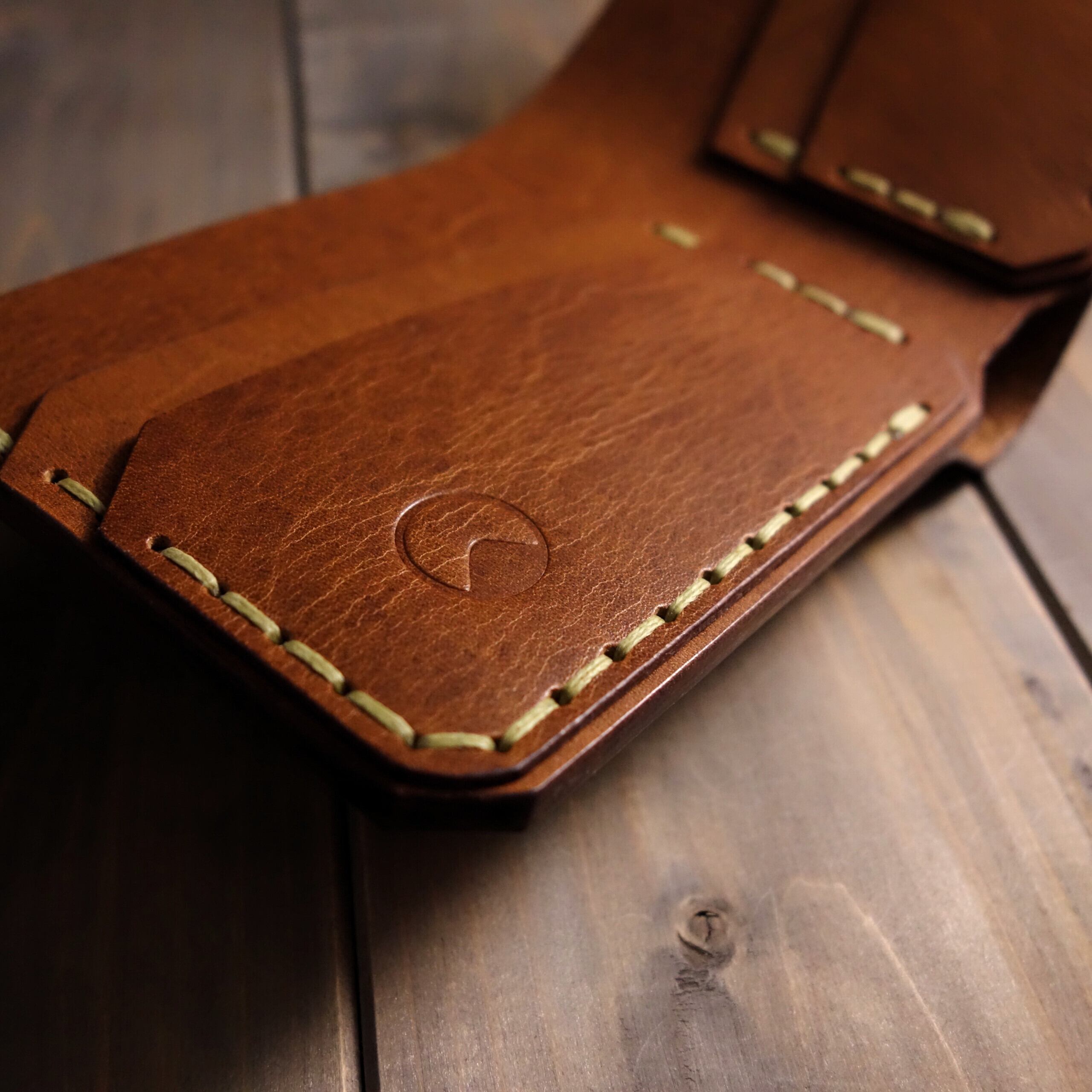 The leather is high-quality brown-core waxed leather from a Japanese tanner.
