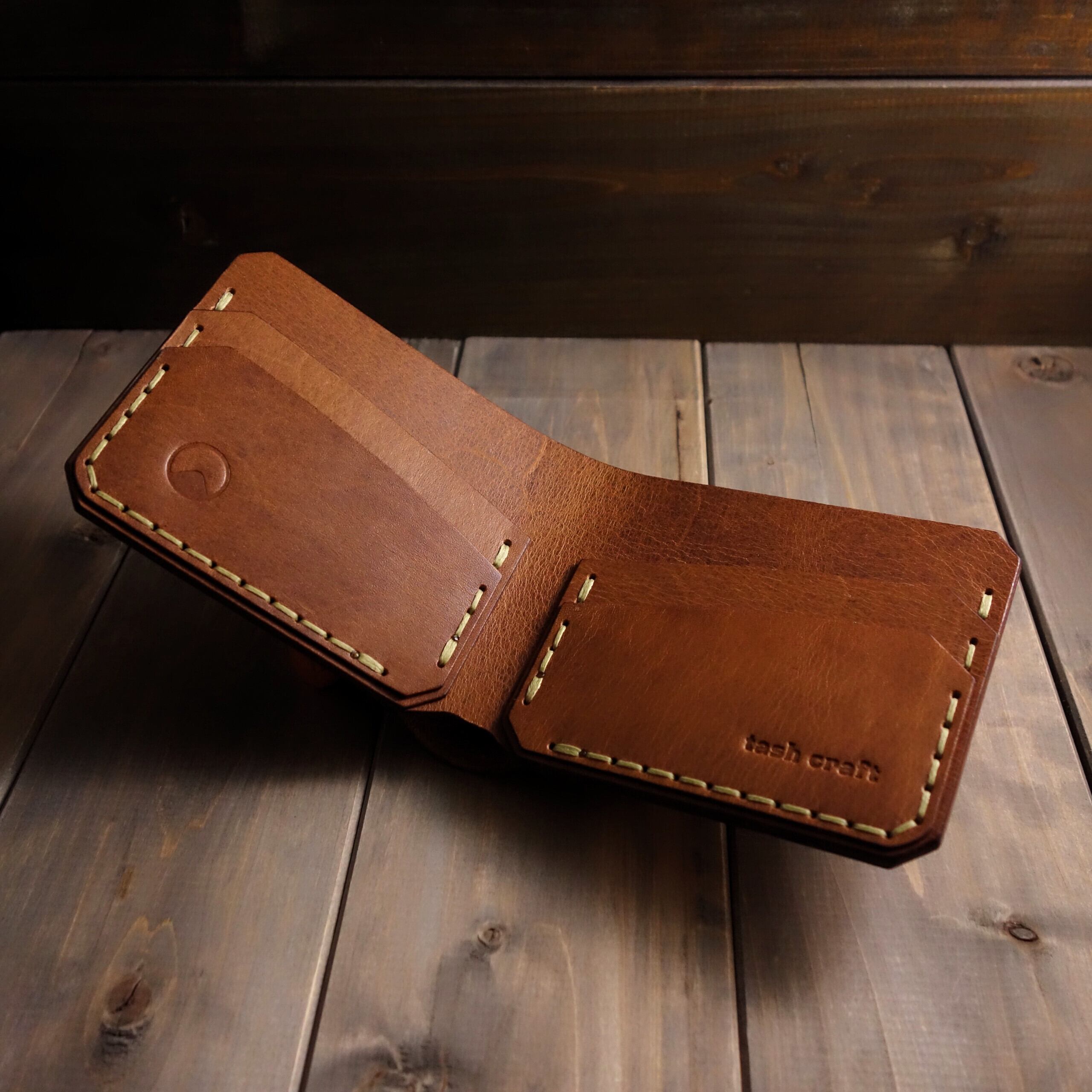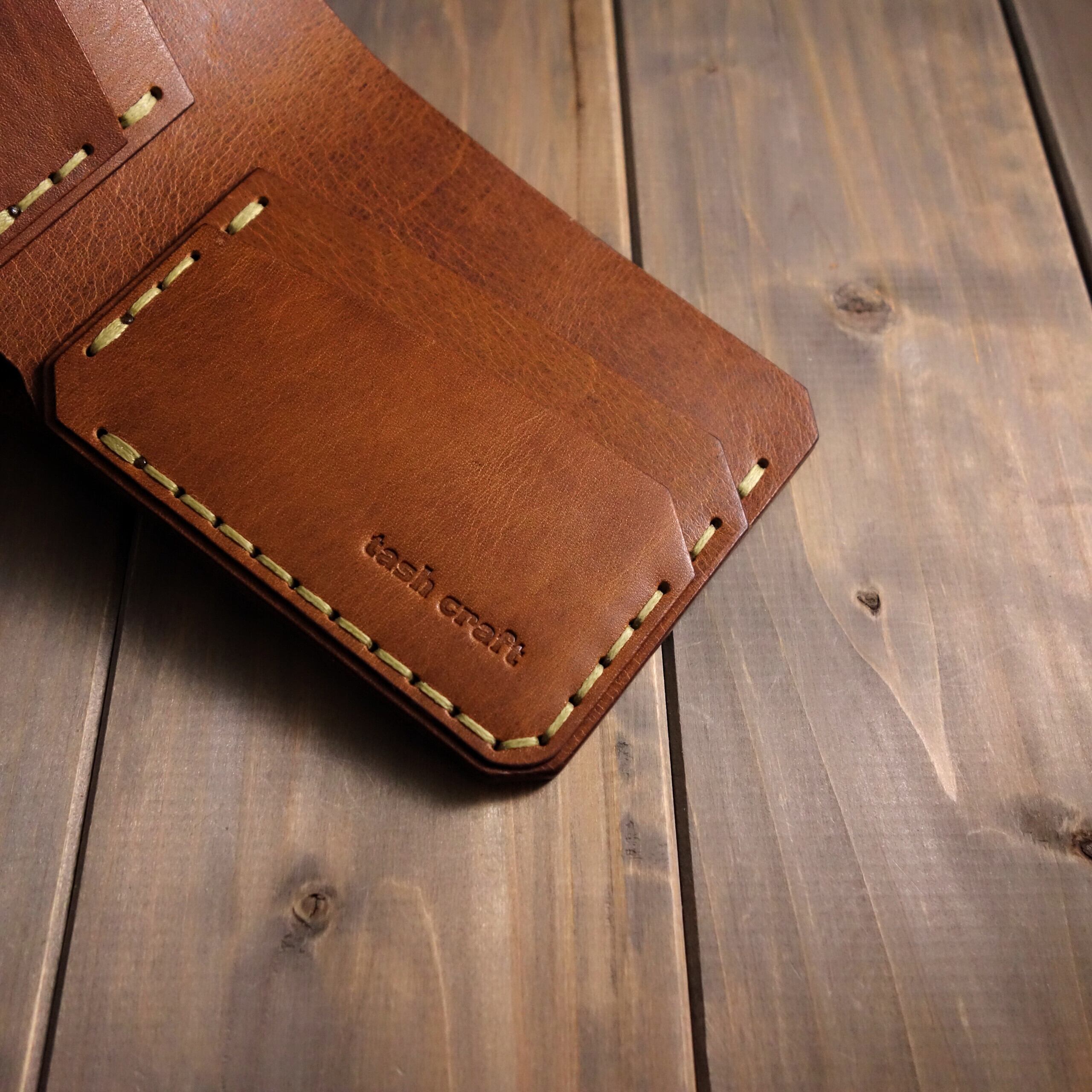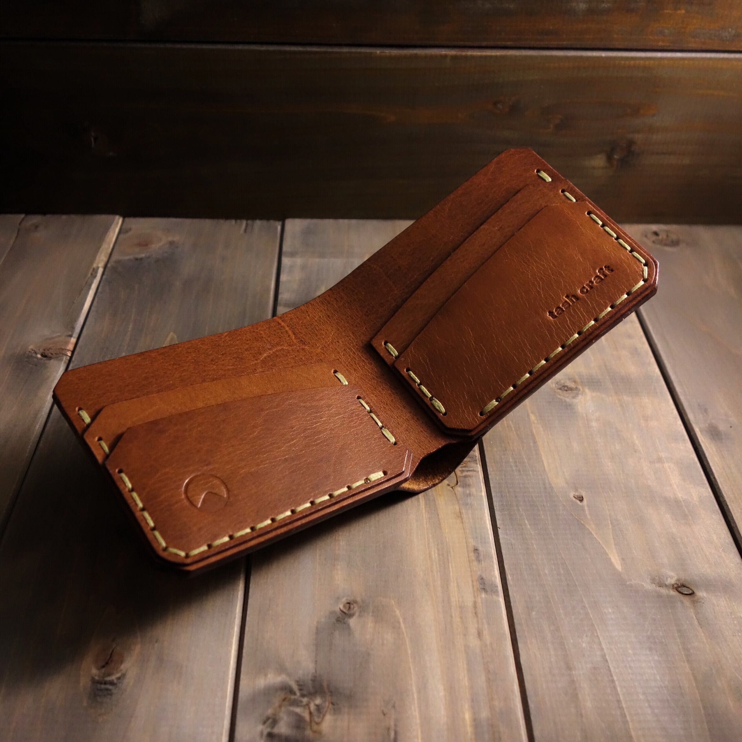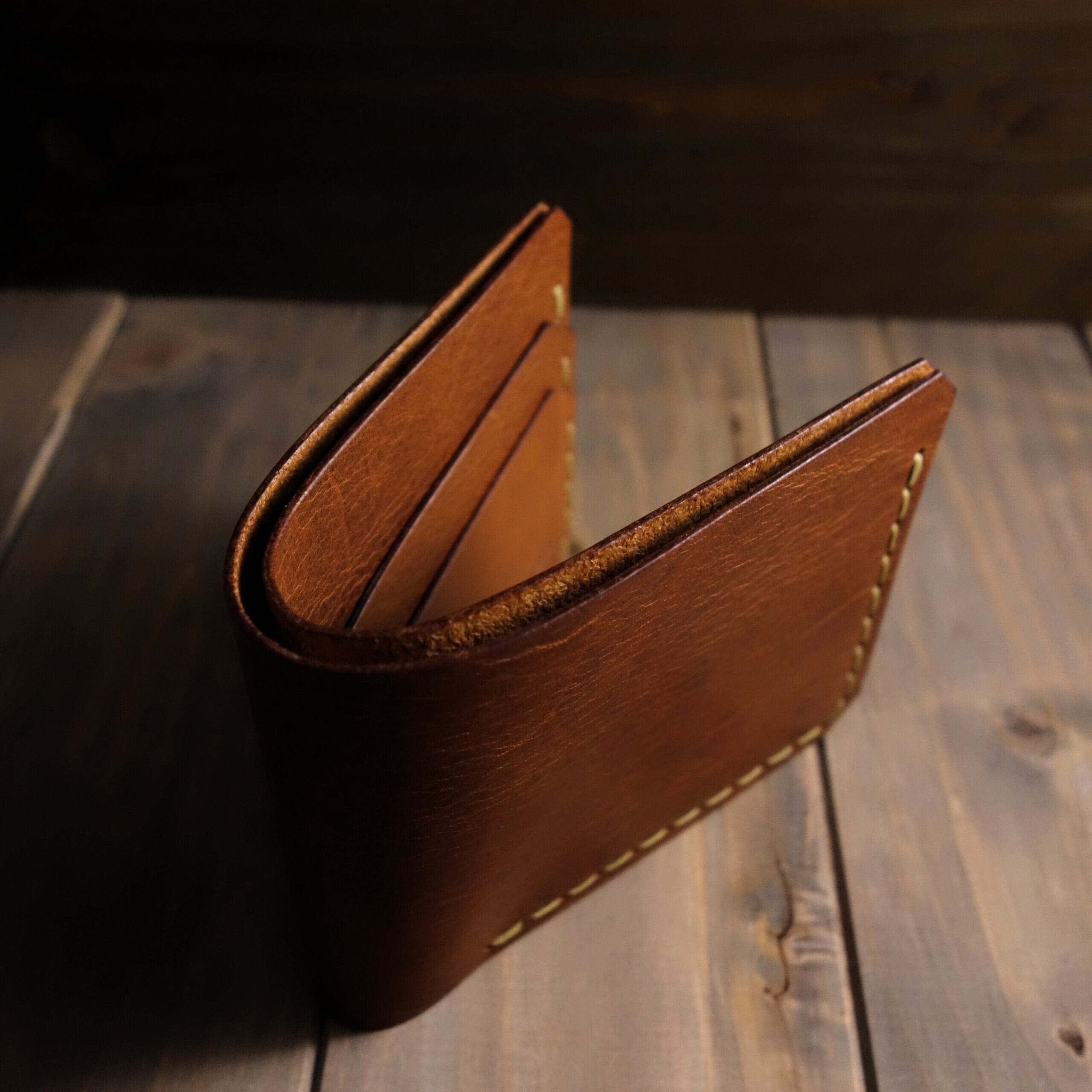 The leather is high-quality brown-core waxed leather from a Japanese tanner.